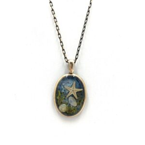 Madeni bronz, gerçek deniz yıldızı, kuyumcu işçiliği ile üretilmiştir, doğal ürün olduğundan şekil ve renk tonlarında küçük farklılıklar olabilir, zincir uzunluğu 45 cm.