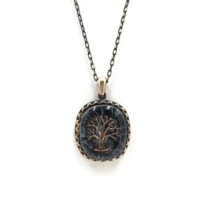 Hayat Ağacı Ebruli El İşi Otantik Reçine Kolye