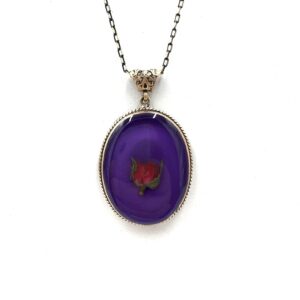 Madeni bronz, gerçek kurutulmuş çiçek, zincir uzunluğu 70 cm.