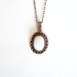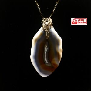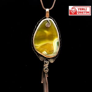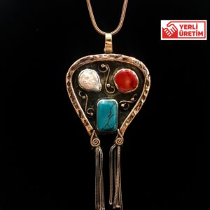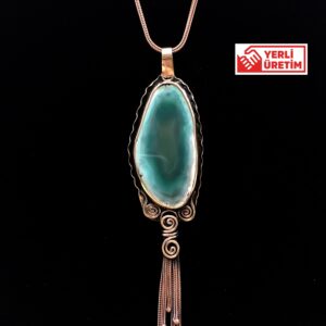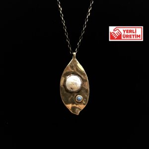 Madeni bronz, el işi sıvama, kuyumcu işçiliğiyle üretilmiştir, doğal ürün olduğundan şekil ve renk tonlarında küçük farklılıklar oluşabilir, zincir uzunluğu 70cm, kutu hediyeli.
